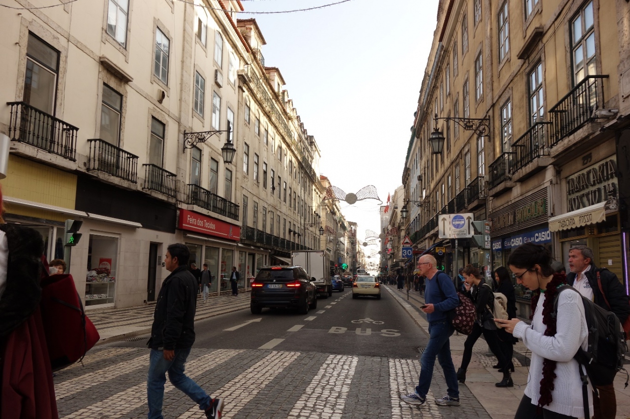 ポルトガルのリスボンに滞在中こちらの通りを散策しました。観光客に人気のアウグスタ通りに並行して走るこの道はトラムやバスが走る生活感が有る道路です。観光スポットは多くありませんが模様の入った石畳が美しかったです。