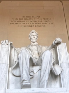 映画の印象から階段すぐ上の屋根のある外に展示されていると思い込んでいたら、しっかり室内にありました。すっごく大きくて圧巻!人もすごい! リンカーンが見ている方向にワシントン記念碑や国会議事堂がまっすぐ伸びていて・・・ 計画的に作られてるんだな~と感心しました。