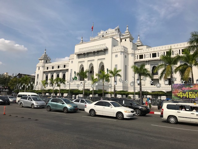 ヤンゴンのダウンタウンの中心地、スーレーパゴタの近くに建っている白亜の美しいコロニアル風の建物です。この近くにはたくさんのコロニアル風の建物がありました、この視聴者が一番美しく感じました。後で知りましたが、最近塗り直されたそうです。どうりで美しいと思いました。