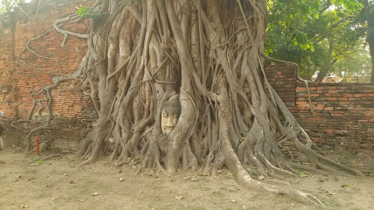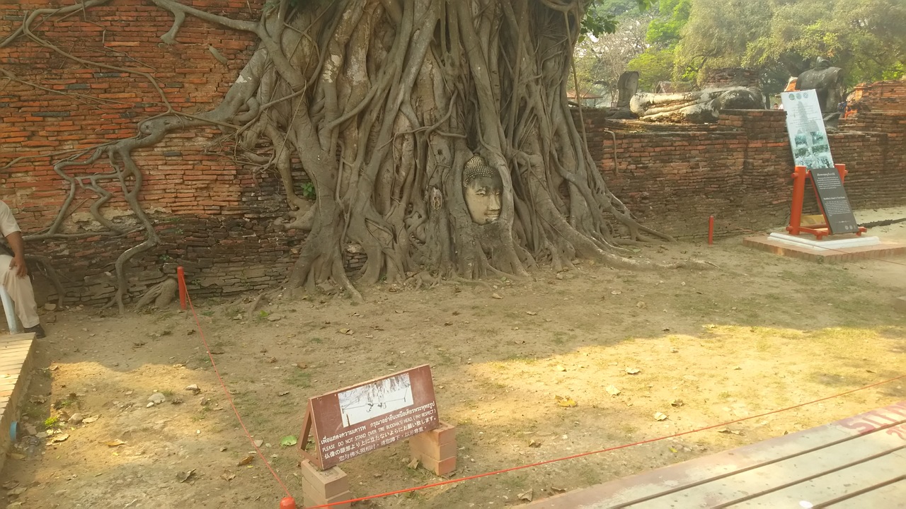 アユタヤ遺跡と言ったら、この写真でしょう。仏頭が木の根に挟まっています。皆さんも一度は目にしたことがあると思います。あまりの人の多さに撮影は至難を極めます。瞬時に撮ることを心がけましょう。次から次へと観光バスが到着しますので大変です。