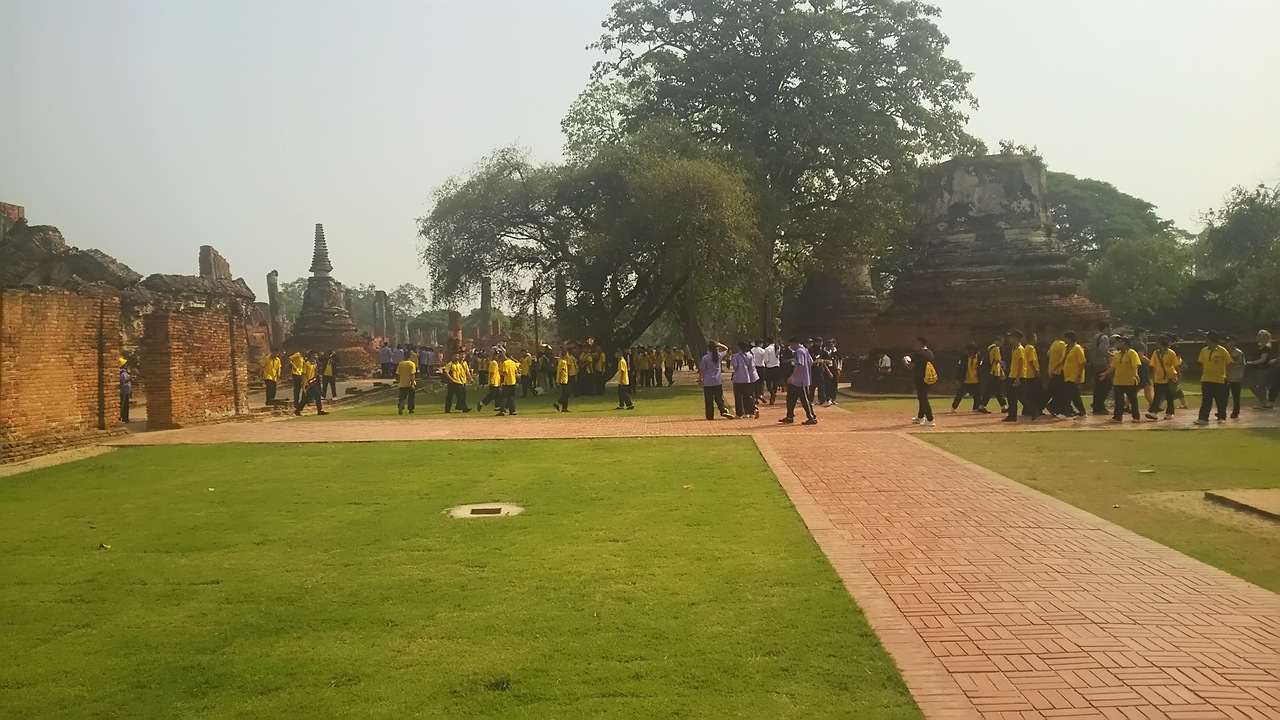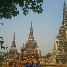 かつてアユタヤ王朝最初の王宮があった地。アユタヤ王朝8世、9世、10世の遺骨が納められた3基の仏塔が有名です。ビルマ軍が侵攻した際も無事残ったそうです。タイの学生さんたちが清掃活動に勤しんでいる姿が微笑ましく感じました。