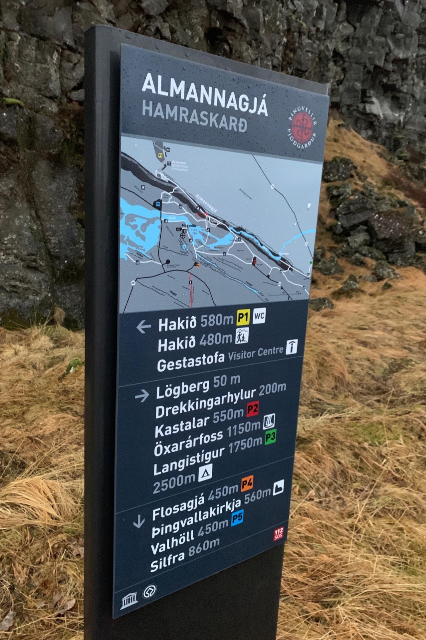 観光客に効率的に公園内を回って貰うために、資料館がある大駐車場で降りて、地球の割れ目を歩いた先、滝を抜けた辺りにあるP2駐車場で再集合、出発というパターンも多いので、ガイドの案内には注意です。