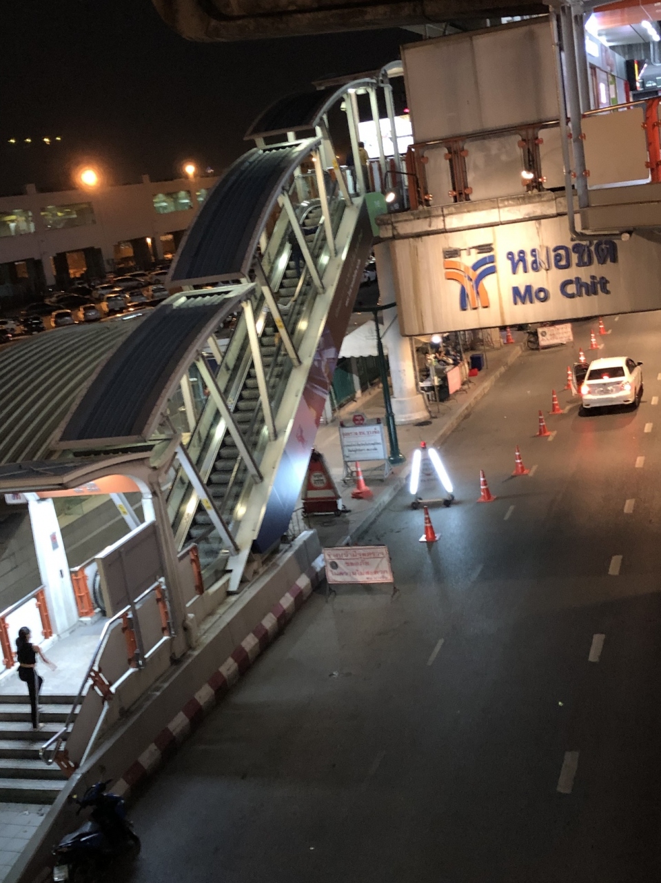 ドンムアン空港からシャトルバスでモーチット駅へ。モーチット駅は高架鉄道・BTSの終着駅でここから市内に向かうのが一番早い。ドンムアン空港に向けて路線延長工事が進んでいるので将来的には通過駅になると思います。