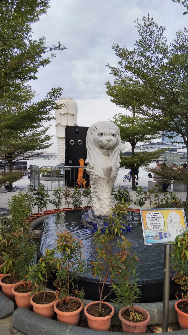 シンガポール旅行の際、お馴染みのマーライオンを見学してきました。よく写真になってるマーライオンにはすごい人だかりができてましたが、そのすぐ後ろにあるちっこいマーライオンを相手にする人はいませんでした。可哀想に…なので私が記念撮影しました。