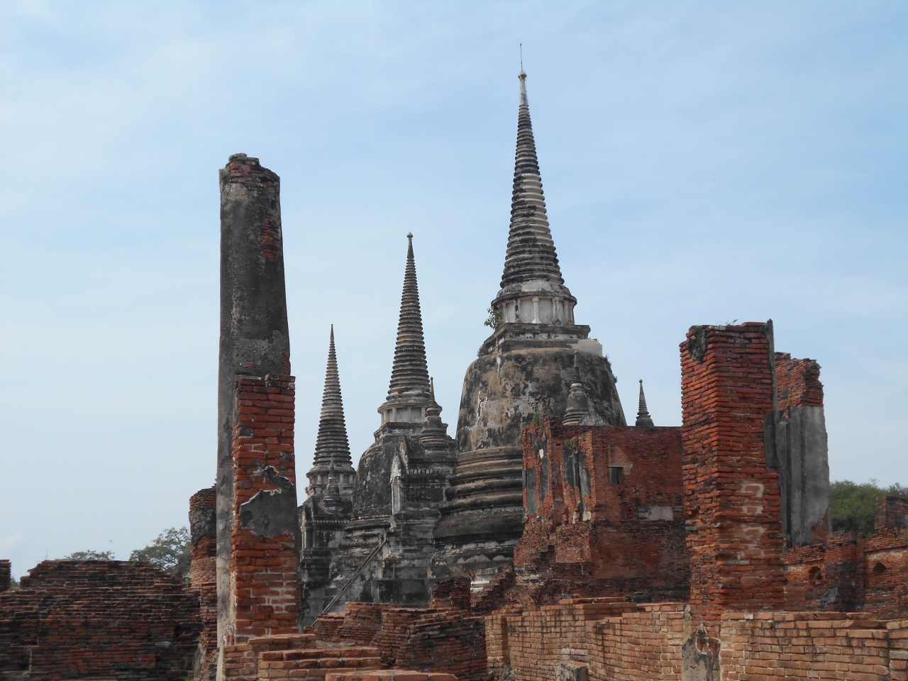 アユタヤ王朝の庇護を受けた寺院。広い敷地に崩れかけの建造物が並んでいます。他国の侵略で破壊された跡は物悲しい。
