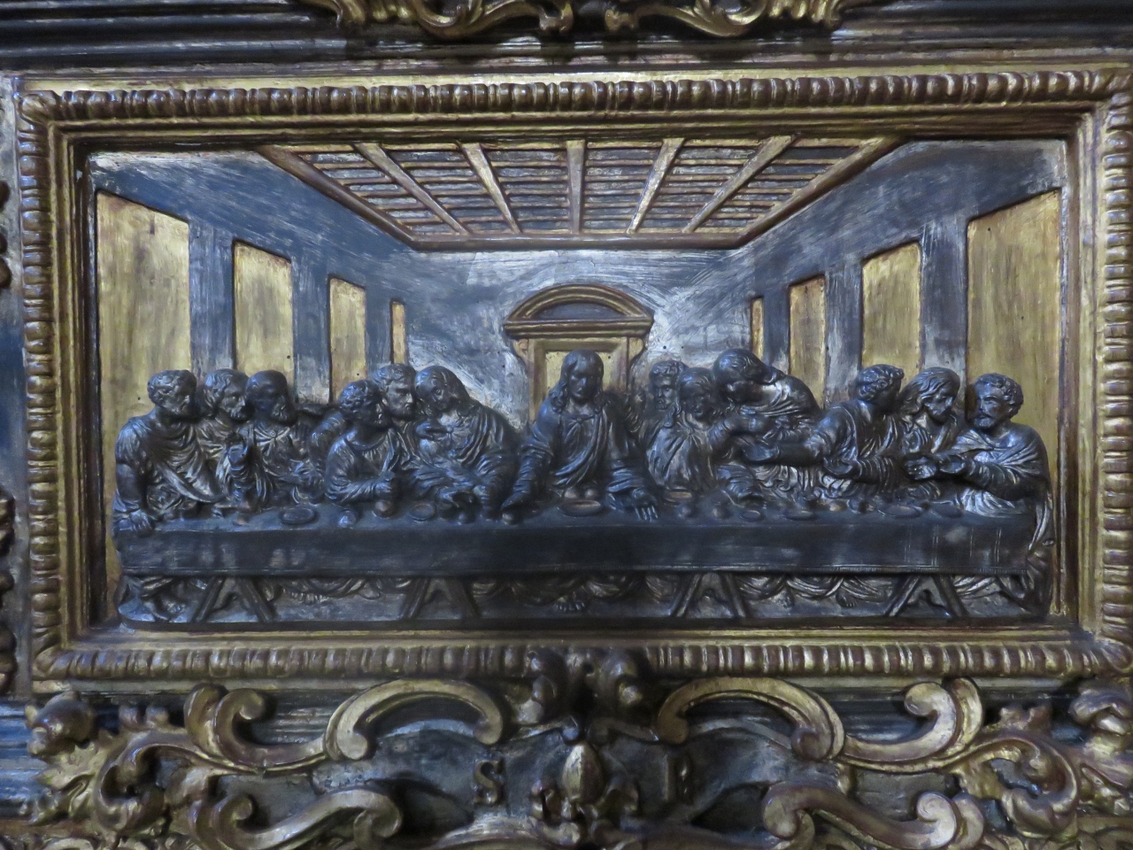 主祭壇のテーブルに彫刻された「最後の晩餐」が飾られていて、驚きました。