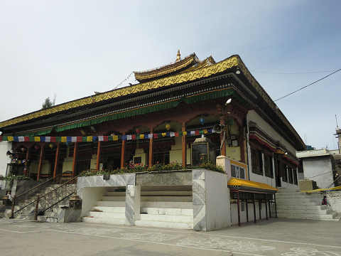 ダライラマが説法を行った場所でもあり、カラフルな外観が見応えのある本堂です。