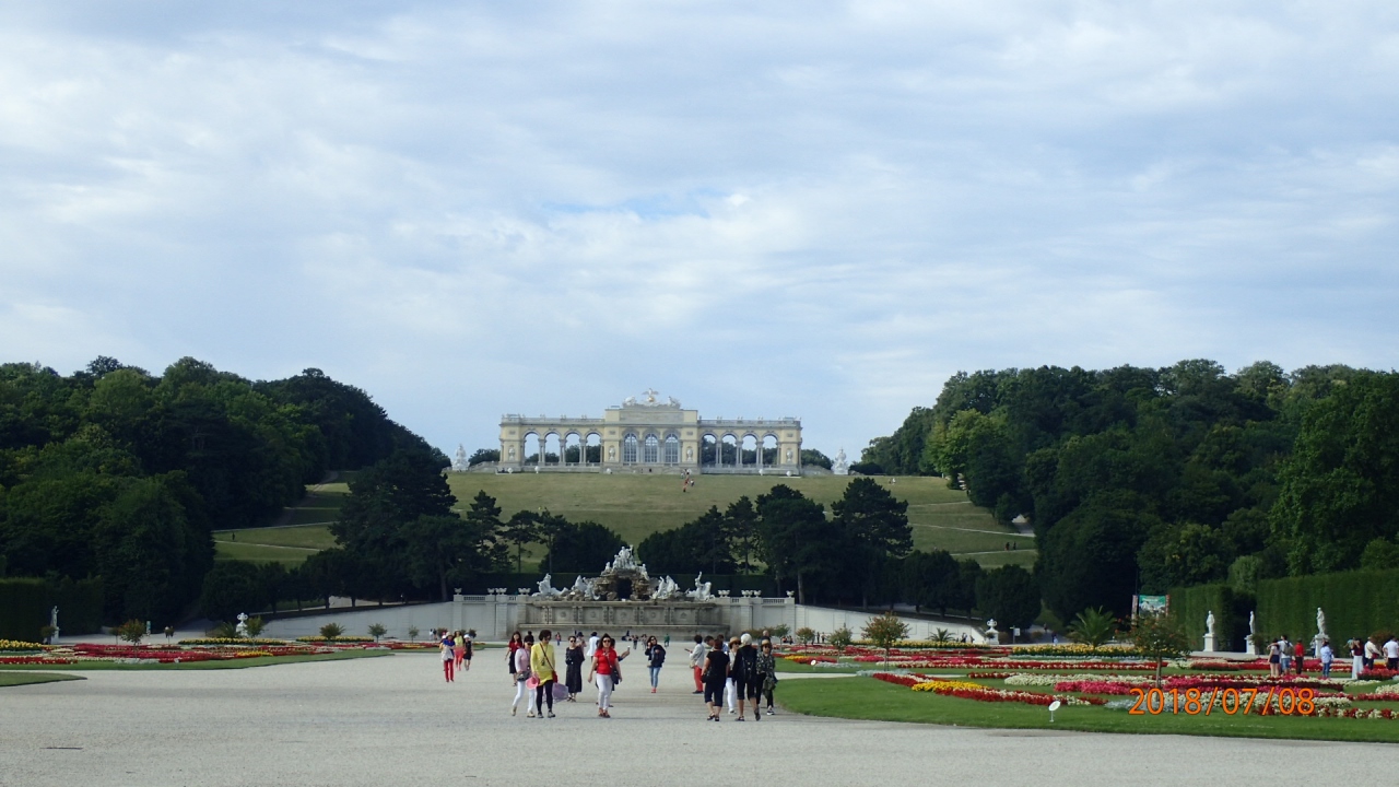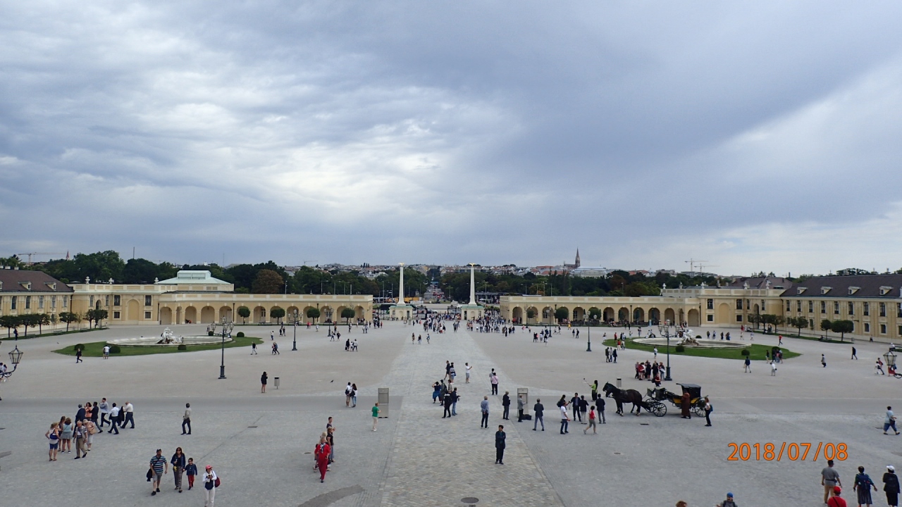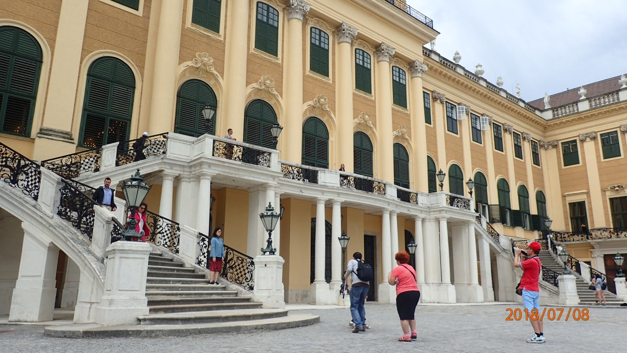 広いのは建物だけでなく庭園もとてつもなく広いのに驚きです。建物の正面に階段が有り昇ってバルコニーに出ることが出来ます。別に禁止されているわけではないのに、何故か昇る人が少なく、ちょっとした穴場です。バルコニーに上がって正門を見ると壮観です。
