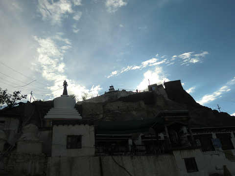 辺りは荒涼とした砂漠のような場所になっており、ここから見るとレーの町は緑豊かな町に見えます。