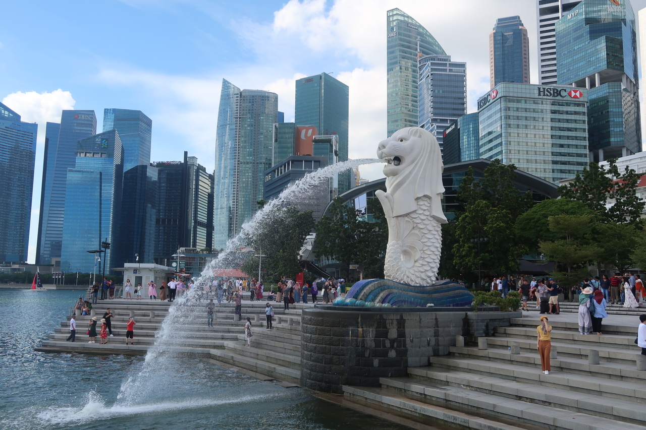 シンガポールを代表する観光スポットです。正面から見るための桟橋も設置され、高層ビル街を背景に勢いよく水を吹き出す姿を写真に収めることができます。チャンギ空港からMRTに乗車、2駅目のタナメリ駅で乗り換えて約30分。ラッフルズスクエア駅下車徒歩10分ほどです。