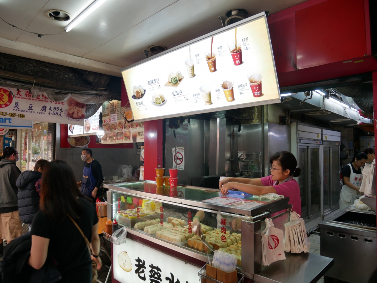 台北駅のすぐ近くになる肉まん屋さん。豚肉、キャベツ、ニラの3種類あり、具がたっぷり入っていますが、1つ1つは小さいので食べ歩きにもちょうど良い大きさです。店頭のメニュー看板には日本語も書いており、注文もしやすいお店でした。