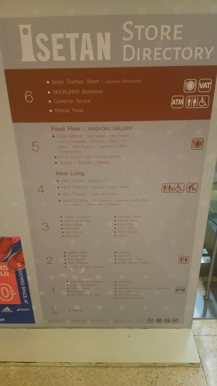 海外で「ISETAN」の文字を見ると安心します。ご存じ日系のデパートです。売場は小さいですが、食料品売場にプリッツやコアラのマーチのタイ版が売っていておみやげに購入しました。周りは大きなショッピングセンターばかりで、近い将来潰れてしまうのではという危惧感を抱かせました。