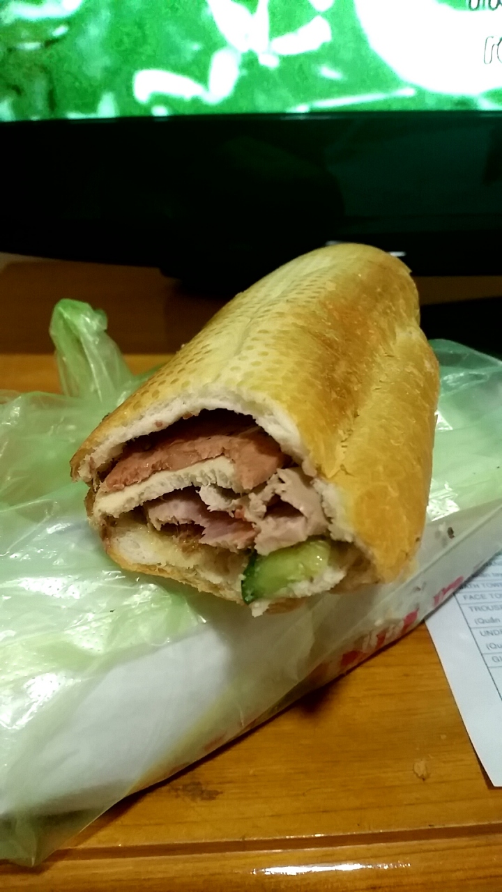 バインミーがホーチミンで一番美味いとの評判で、1つ40,000ドンを2つ購入しました。
