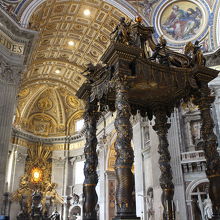 サン・ピエトロ大聖堂内の祭壇前の巨大なブロンズ製の天蓋