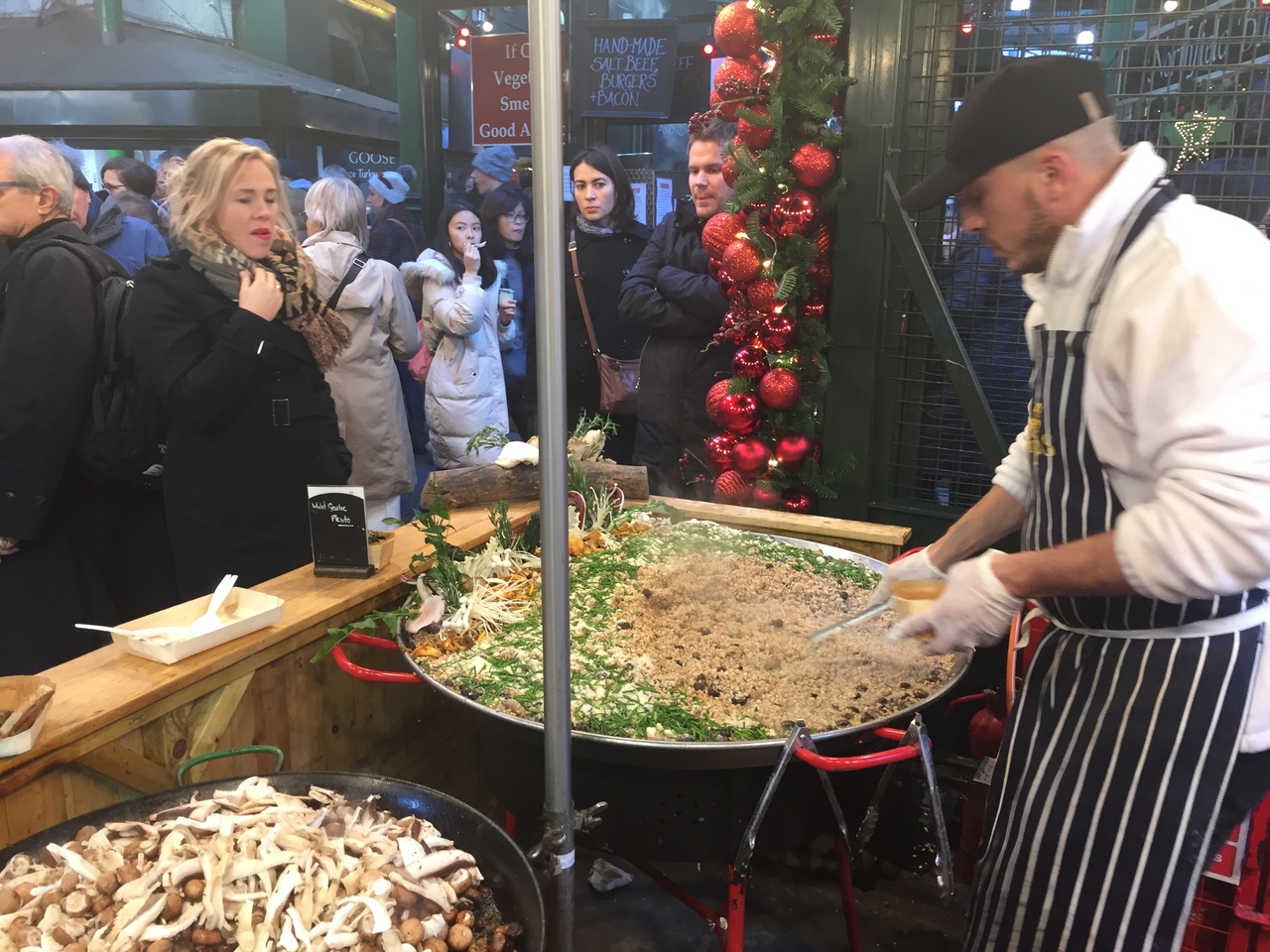 観光客だけでなく地元の人もよく利用するマーケットだと聞いて興味を持ちました。週末の土曜日に行きましたが、たくさんの人で賑わっていました!ある程度食材のジャンルごとに店舗が分かれてました。試食なんかもさせてくれました。私はキノコのチーズリゾットをいただきました!ロンドンの食事とは思えないぐらい美味しかったです。
