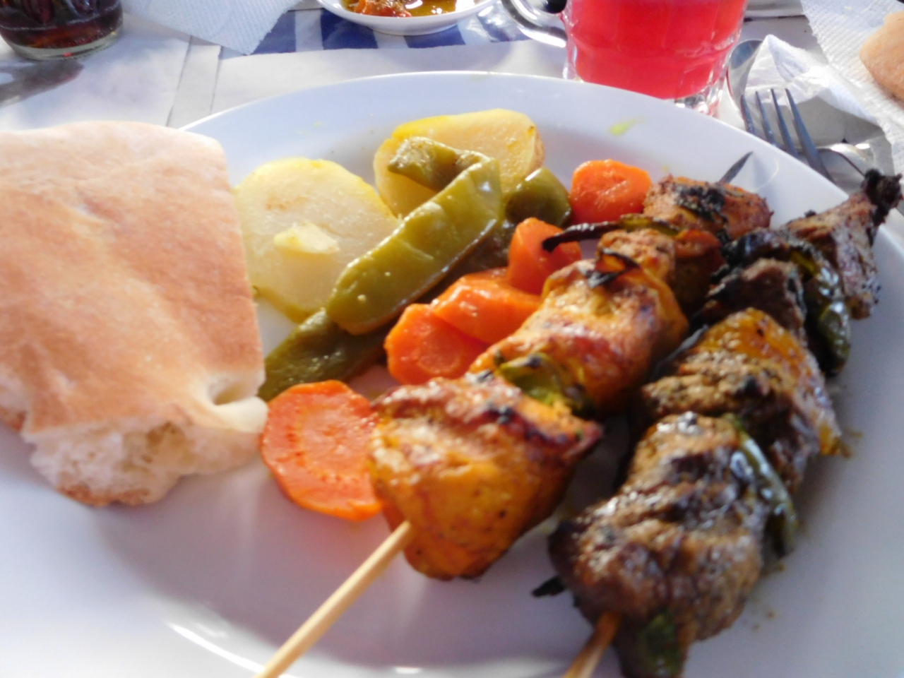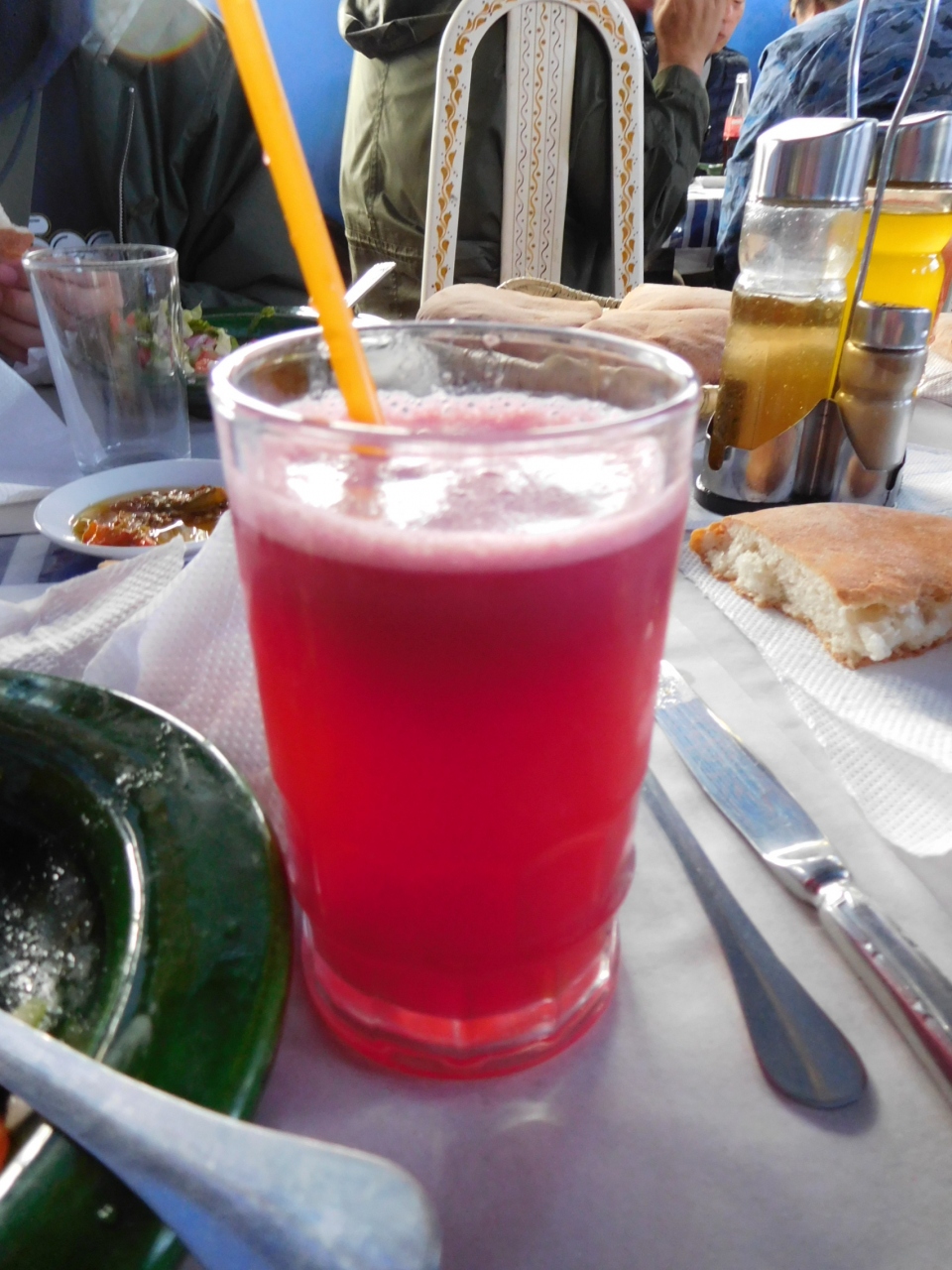 メニューはモロカンサラダとミックスプロシュート、デザートは果物の盛り合わせでした。飲み物は生のザクロジュースを頼みましたが、これがまた美味しかったです。
