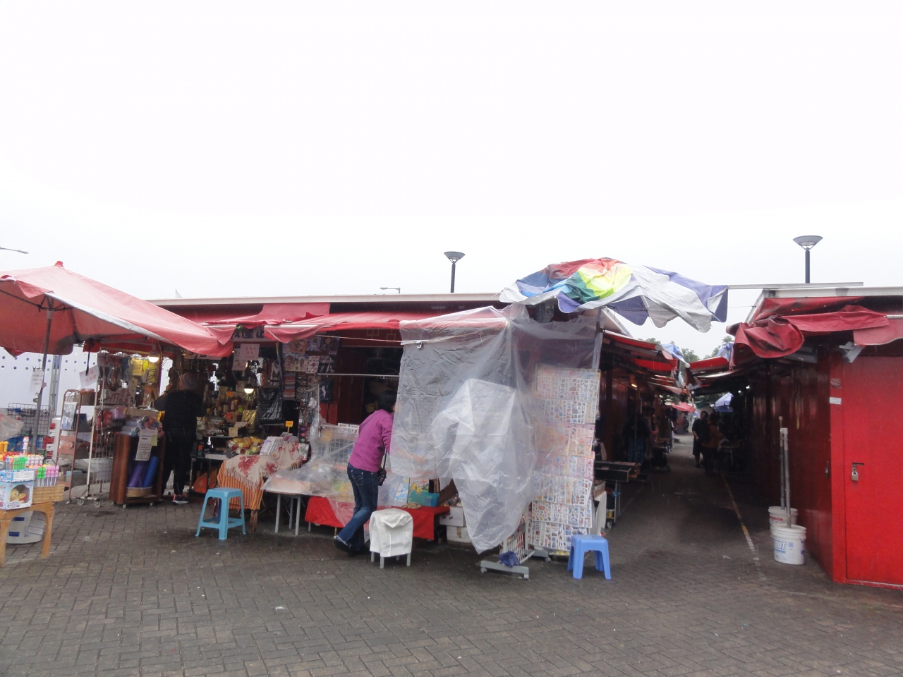 MTR西鐡綫の錦上路駅B出口から見えます。吉慶園に行く時に立ち寄りました。赤い小さな小屋のようなお店が立ち並び、衣料品や雑貨等、リサイクルショップのような品揃えで、こんなの買う人いる?のものもありました。急な雨で傘を購入しましたが軽い折り畳み傘は45$、よく見たら日本製でした。日曜日の午前中、10時過ぎでしたが半分も開いてませんでした。