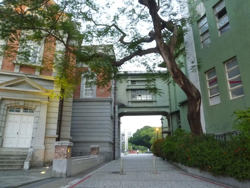 ここも民生緑園の周辺にある観光スポットの一つで、グレーとレンガ色の大きな綺麗な二階建ての建物で、アーチ形のモスグリーンの屋根がありました。