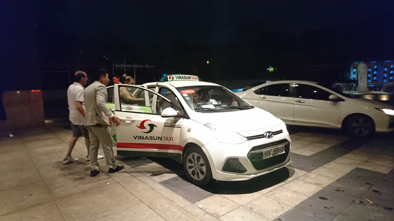 ホーチミンのタクシーは、悪質なぼったくりドライバーが多いのが実態。そういった中で比較的安心とされるタクシーは、ビナサンかマイリン。ビナサンは白い車体に赤と緑のラインが目印ですが、悪質なタクシーも似たカラーを模していることもあるので、行灯または車体に「38.27 27 27」と書いてあればビナサングループの車両です。高級ホテルの場合、ビナサンのほうが人気があるようです、マイリンは濃い緑の車体が特徴で比較的見つけやすい。行灯かもしくは車体に「38.38 38 38」と書いてあてばマイリンです。ビナサン、マイリンだからと言って必ずしも安心なわけではありませんが、他よりは安心というレベルです。また、車にはカーナビがついていますが、運転手はそう道を知っているわけではないので、高級ホテルは良いものの、レストランなどの住所を言ってもちゃんと連れて行ってもらえないこともあります。車両の大きさで初乗りが異なります。