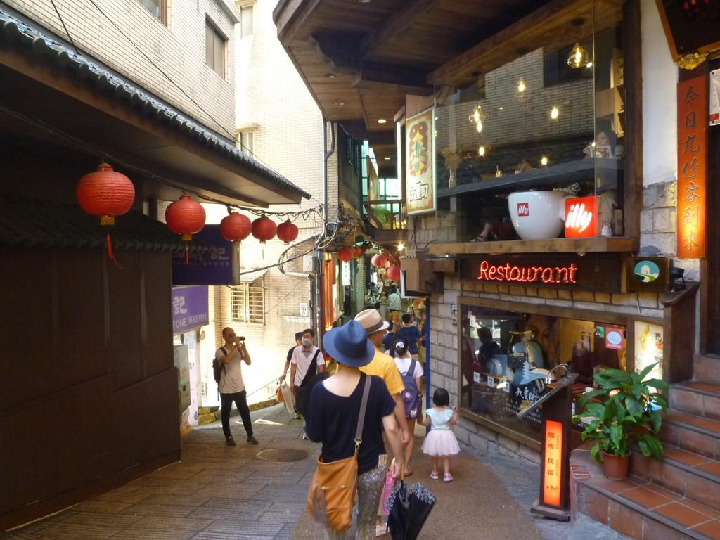 基山街を上り、九分老街を散策しました。基山街、九分老街は観光客で混雑していました。