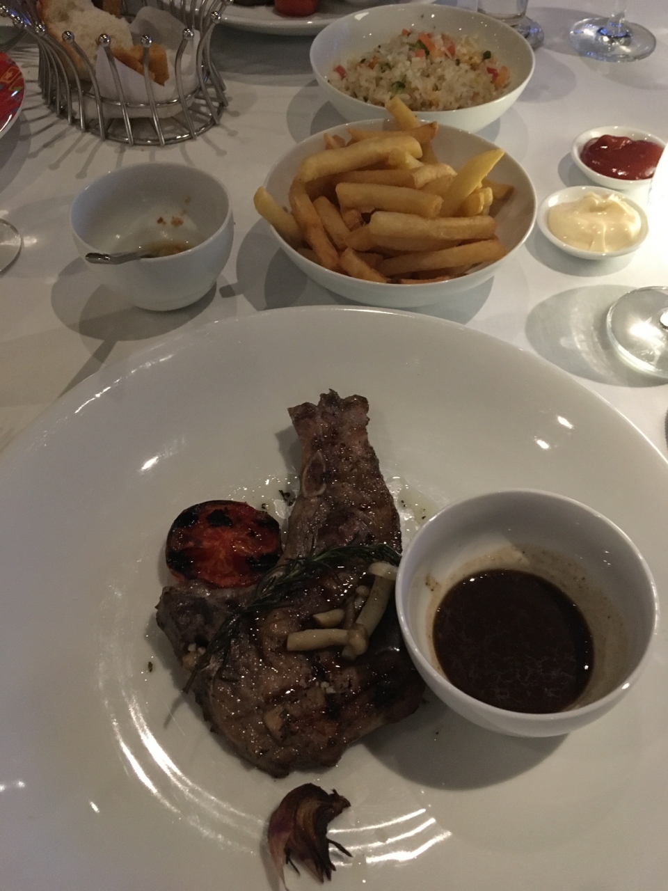 お肉料理にはパンとサイドメニュー(炒飯やポテトなど)がついてくるため、一人一皿で十分なくらいです。