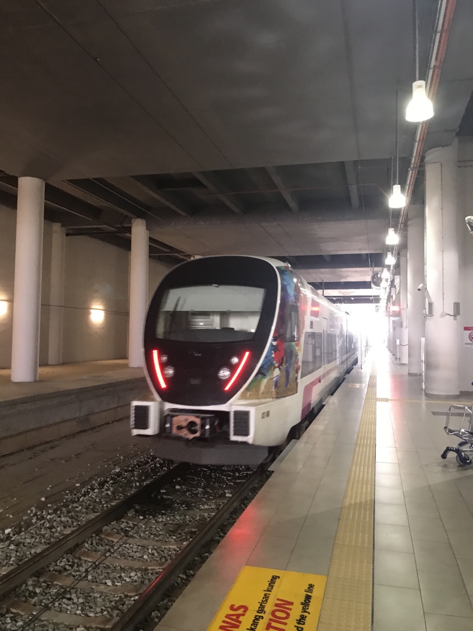 空港から市内までの移動で鉄道が空港に直接乗り入れているっていうのはそれだけで便利なんですが、クアラルンプールの駅は場所の解りやすさと近さはとても良いと思います。チケットの購入も比較的スムースです。