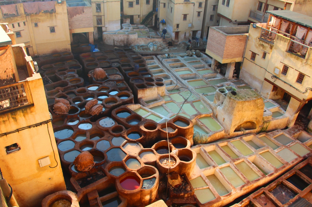 フェズの中でも一番有名な観光ポイントと言えば、革製品の染色を行う巨大作業場のタンネリで、フェズを訪れたならばマストとも言われている訪問場所だ。