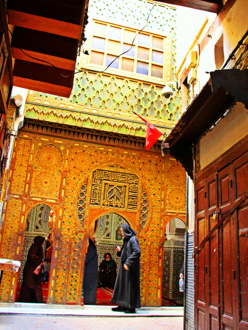 ザウィア ムーレイ イドリス廟は、イスラム教徒しか入場できない祈りの場で、観光客はその入口から内部の様子をのぞき見ることができます。