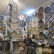 HISの10日間の周遊ツアー(モロッコ夢紀行10日間)で訪れました。フェズは終日観光です。ツアーのお約束としてフェズではショッピングが数か所含まれています。ツアー御用達のショップだと思われますが、陶器自体は良さげです。タジン鍋を購入しましたが、確か1200ディルハムでした。市販の価格の3倍位するのではないかと思われますが、品物は悪くなさそうです。