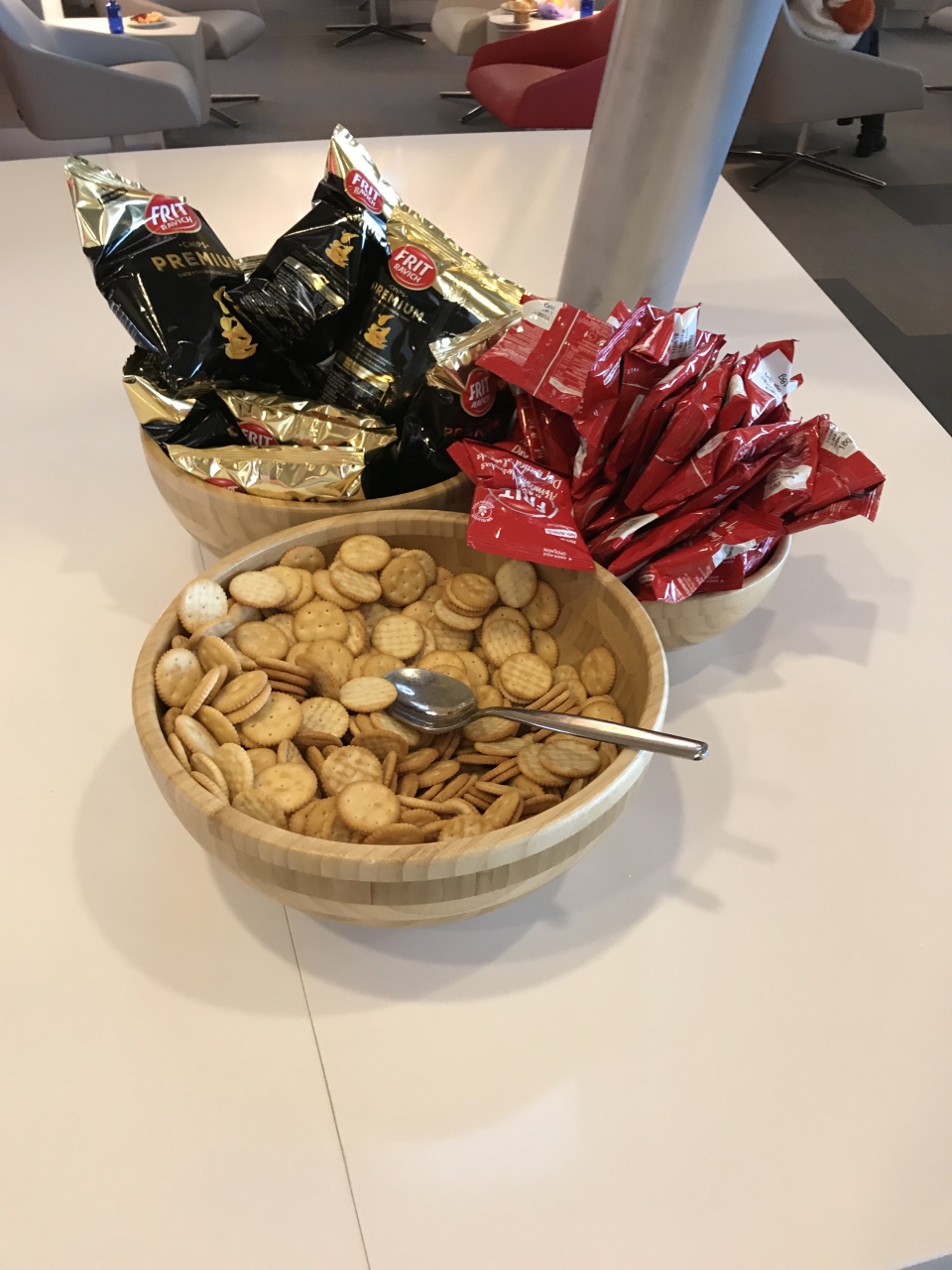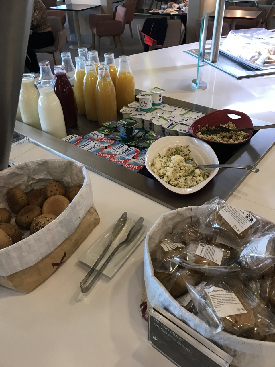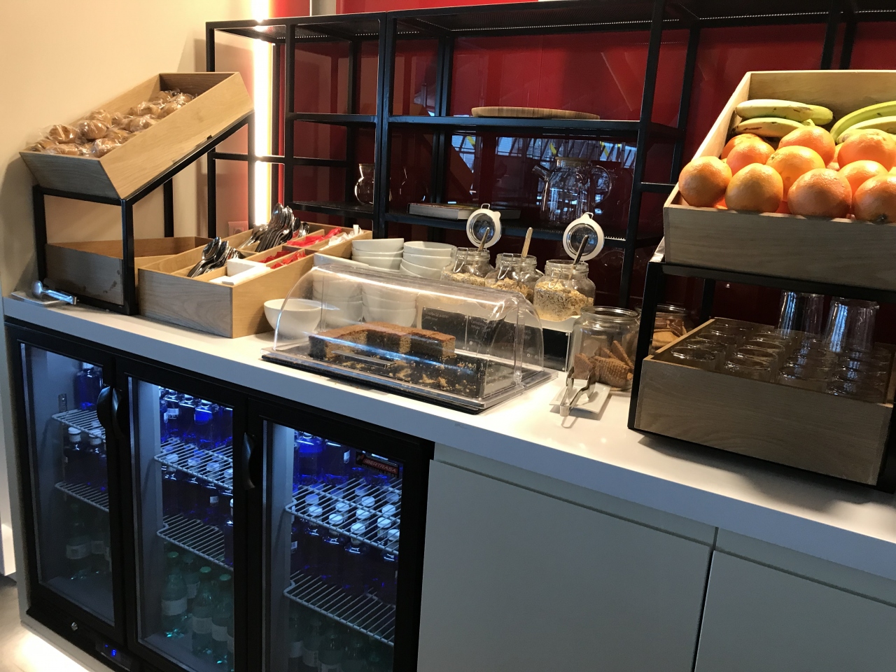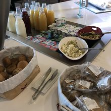 早朝の時間帯に利用した際は、料理もスナックの種類も減っていました。サラダやスープも無く、パンやハム、チーズがあるだけでした。