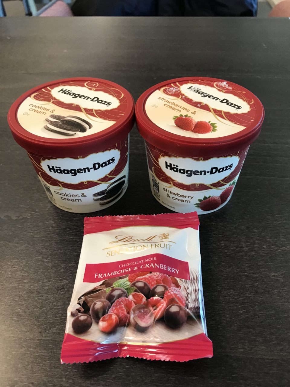 ホットミールと言えるのは、スープくらいで、後はサラダやパンのみで、あまり料理の種類は多くなかったです。ドリンクの種類は、アルコールも含め豊富でした。アイスクリームは、ハーゲンダッツがありました。