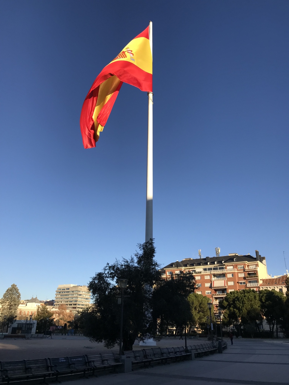 セラーノ通り沿いにある大きな広場です。大きなスペイン国旗がたなびいているので、遠くからでもよくわかります。