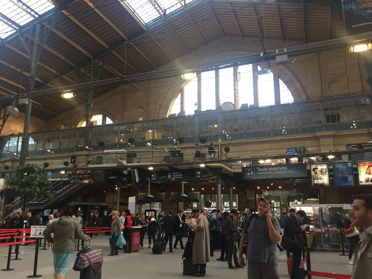 ロンドンからユーロスターに乗って、到着しました。駅自体が広く、大きいのはもちろん、商業施設が充実していて、人も多く、活気を感じました。ごみごみしている雰囲気が東京に似ていて好きです。トルコ経由でロンドン、パリとたどり着きましたが、それぞれの空港で独特な匂いを感じることができます。この北駅ではキツイ香水のような匂いを感じました。