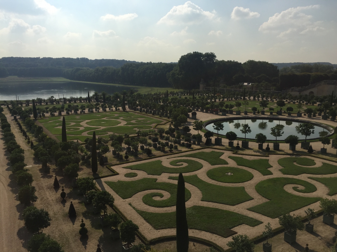 宮殿を見学し終えてから庭園にやってきました。噴水ショーが行われていなかったので、入場は無料だった気がします。植木の間隔や配置などが精密で1つの芸術作品のような庭園でした。幾何学模様にが描かれている芝生が独特で面白いです。