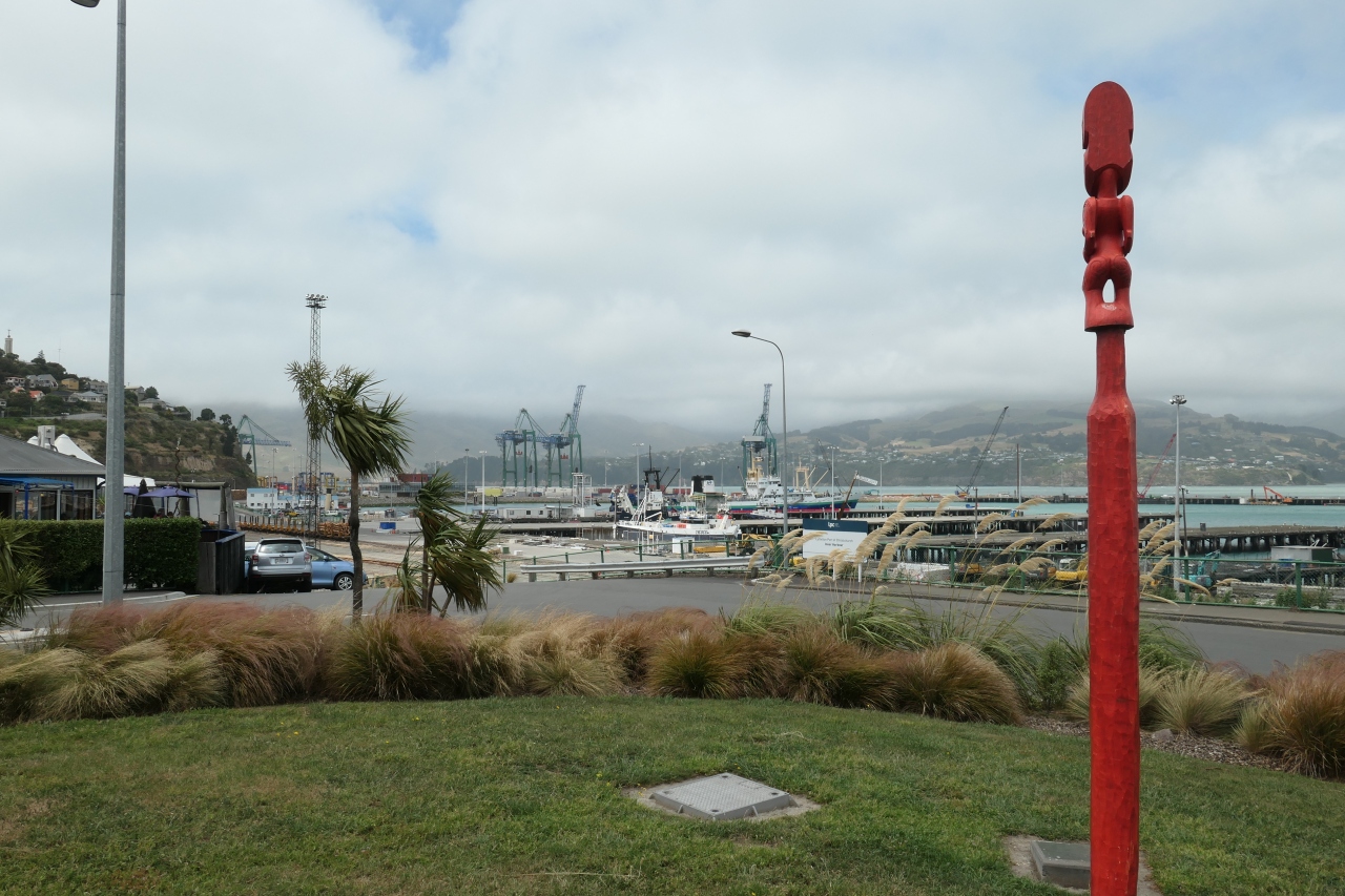 リトルトンはクライストチャーチなどへの入植者たちが利用したニュージーランドの代表的な港町で、現在も主要貿易港として活用されています。レンタカーでこの町を訪問しました。港付近に小さな広場やフィッシャーマンワーフなどがありましたが、観光客は少な目でした。港を見下ろせる小さな広場に欧米系観光客の団体さんがおり、ガイドさんの説明を聞いていました。この港の歴史が興味の中心であるように見受けました。南極探検で有名なキャプテン・スコットもこの港を経由して南極大陸に向かっています。