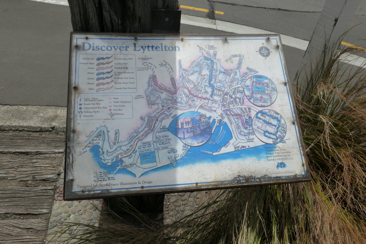 港の前を横切る道路沿いに昔風の建造物が幾つかあり、ホテルやお店として使われていましたが、あまり見るべき対象物は無いように思いました。町が設置したと思われる観光地図パネルも風化が進んでいました。リトルトンは歴史的な意味がある港町であることは分かりました。