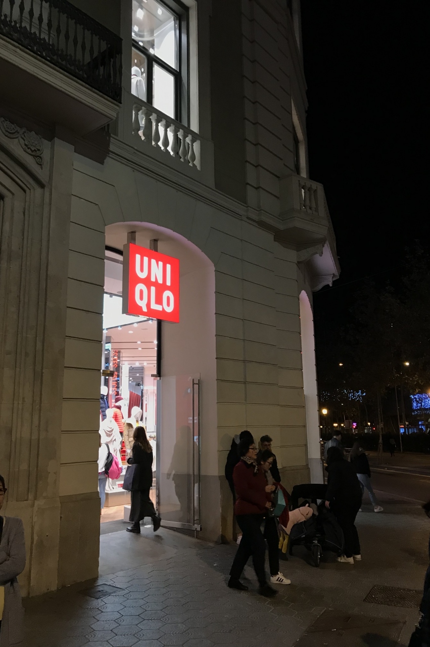 場所はグラシア通り沿いで、カタルーニャ広場に近いです。日本でお馴染みのマークなので、すぐにわかりました。地下一階、地上三階と非常に大型の店舗です。商品は日本と一緒で、価格は少し高い印象でした。レジには行列が出来ていて、人気店であることがうかがえました。