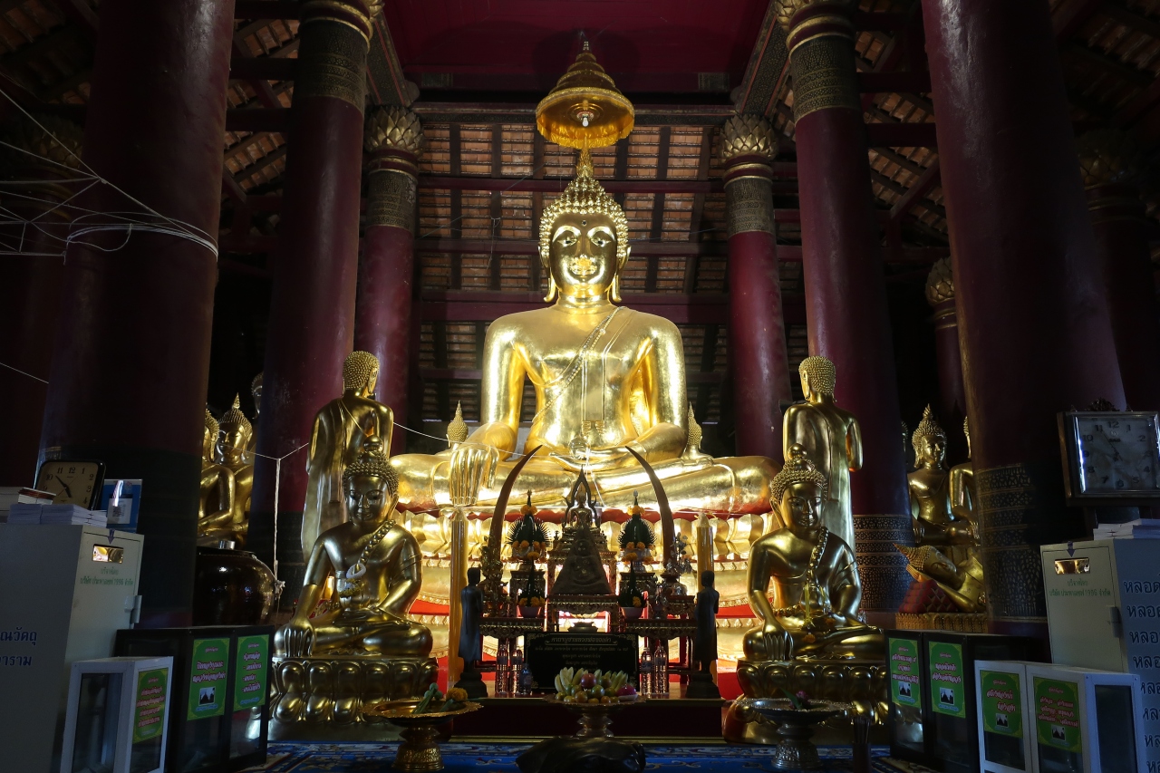 ワット・プラ・シー・ラタナー・マハタート(ワット・ヤイ)側から道を渡ってアクセスできますが、交通量が多いので近くの歩道橋を使ったほうがよさそうです。敷地内に建物がいろいろあり、700年前に作られたと伝えられている仏像が納められているお堂もありました。このお堂の中には、ほかにも古そうなものがたくさんありましたが、薄暗くてよく見えませんでした。行ったとき、敷地内にはなぜか警察官がたくさんいて、休憩している様子でした。