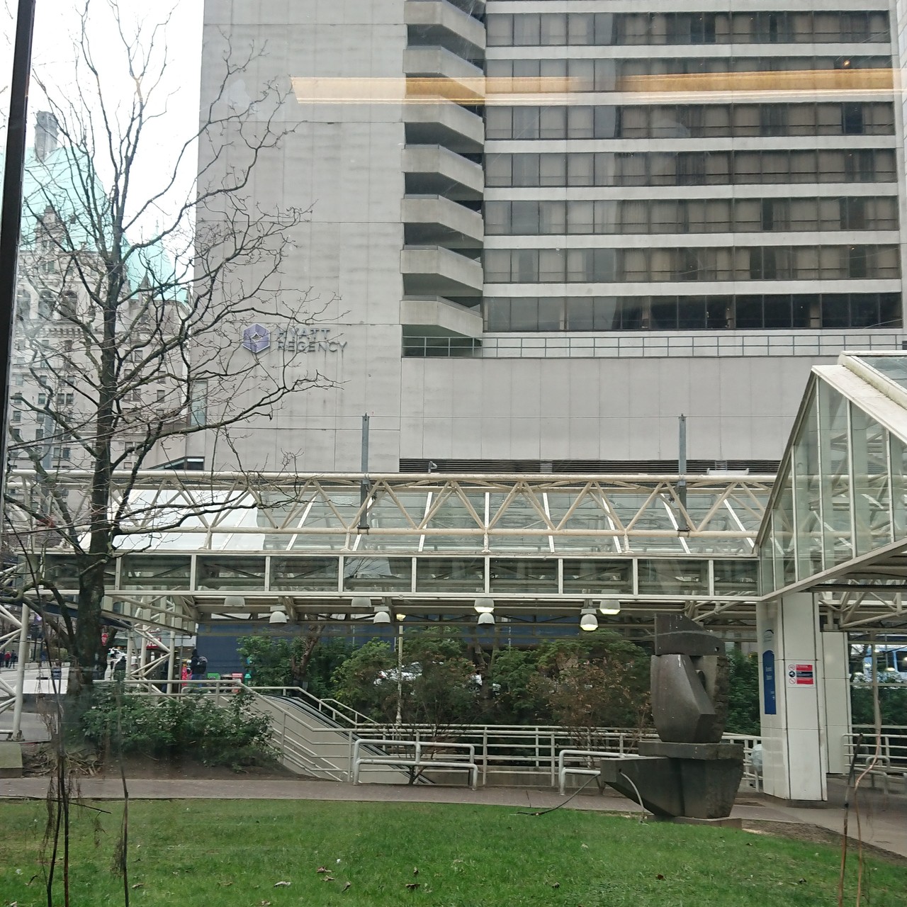バラード駅を出たところのハイアット・リージェンシーの前がバス停になっていて、キャピラノ吊り橋や、ウイスラーのスキー場へのバスが出ています。