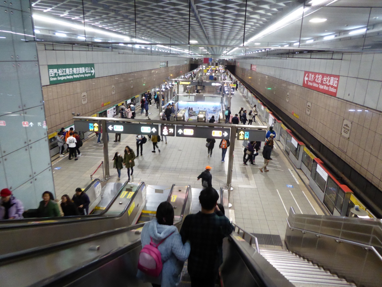 また、ここは他の駅とは違って珍しく、同じホームで淡水信義線と松山新店線が隣り合わせとなり、多くの人が乗り換えで利用されているようです。