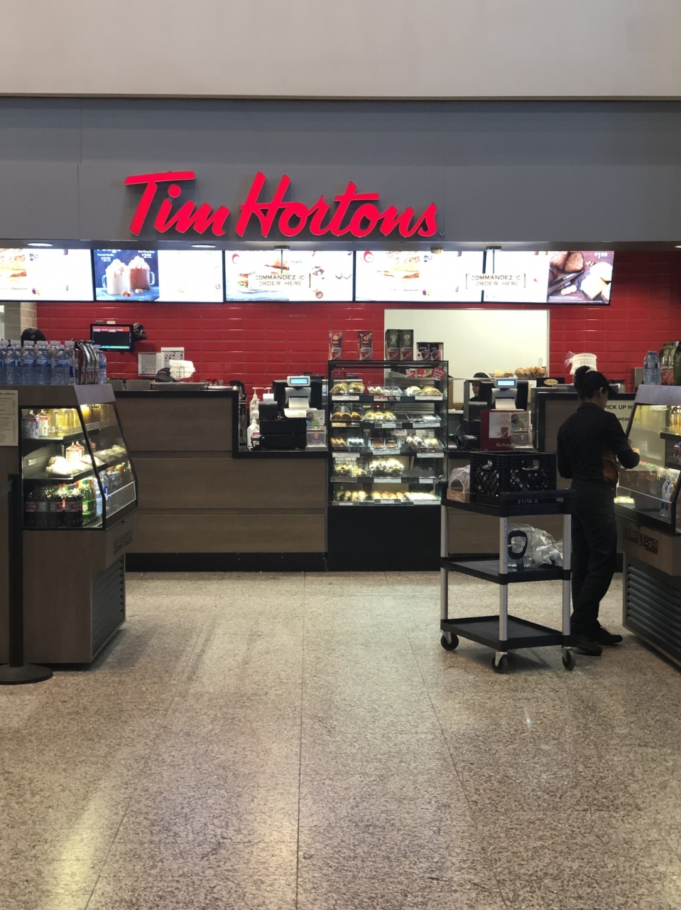 トロント空港からUP expressに乗る途中で寄りました。ドーナツは一番安いものは99セントでした。チョコレートのオールドファッションは甘すぎず、美味しかったです。しかし、ミネラルウオーターが1.8カナダドルしたのにはびっくりしました。