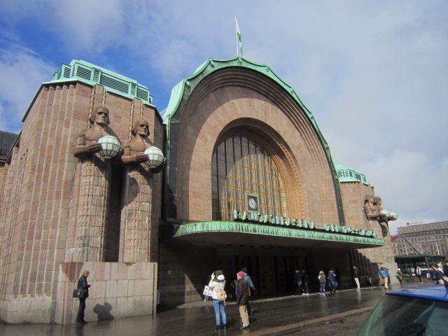 現在の駅舎は、エリエル・サーリネンが設計し1919年に完成したもの。正面玄関には左右に2体ずつ、ランプを持った石像が鎮座しています。100年を超す駅舎の内部を見るだけでも価値があります。構内にはカフェ、ファーストフード店、スーパーマーケットやパブもあります。