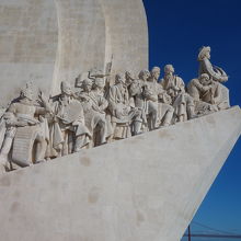 水面に向って板状になっているモニュメントです。したがって,午前中は左側の面に光が当たり,右側の面は影になります。午後は逆です。たくさんの人物が彫られているので,望みの人の写真を撮りたかったら時間を木にかけておくといいでしょう。