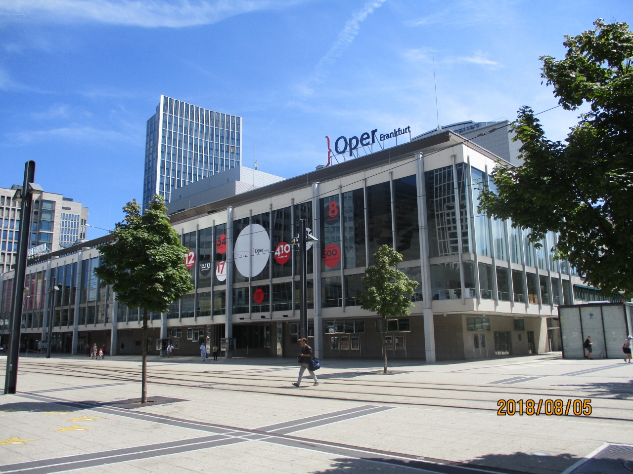 フランクフルトのユーロビル(旧欧州中央銀行)の南側に建っています。全面ガラス張りのとても斬新な建物で、ヨーロッパ各地にみられるオペラハウスのイメージからは、まったくかけ離れた近代的な建物です。付近一帯が公園になっていて、ユーロタワーとともに、フランクフルトの観光スポットになっています。