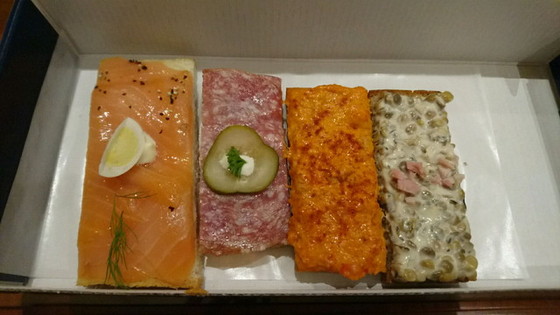 パンも上に乗っている具材によって黒パンだったり白パンだったりました。