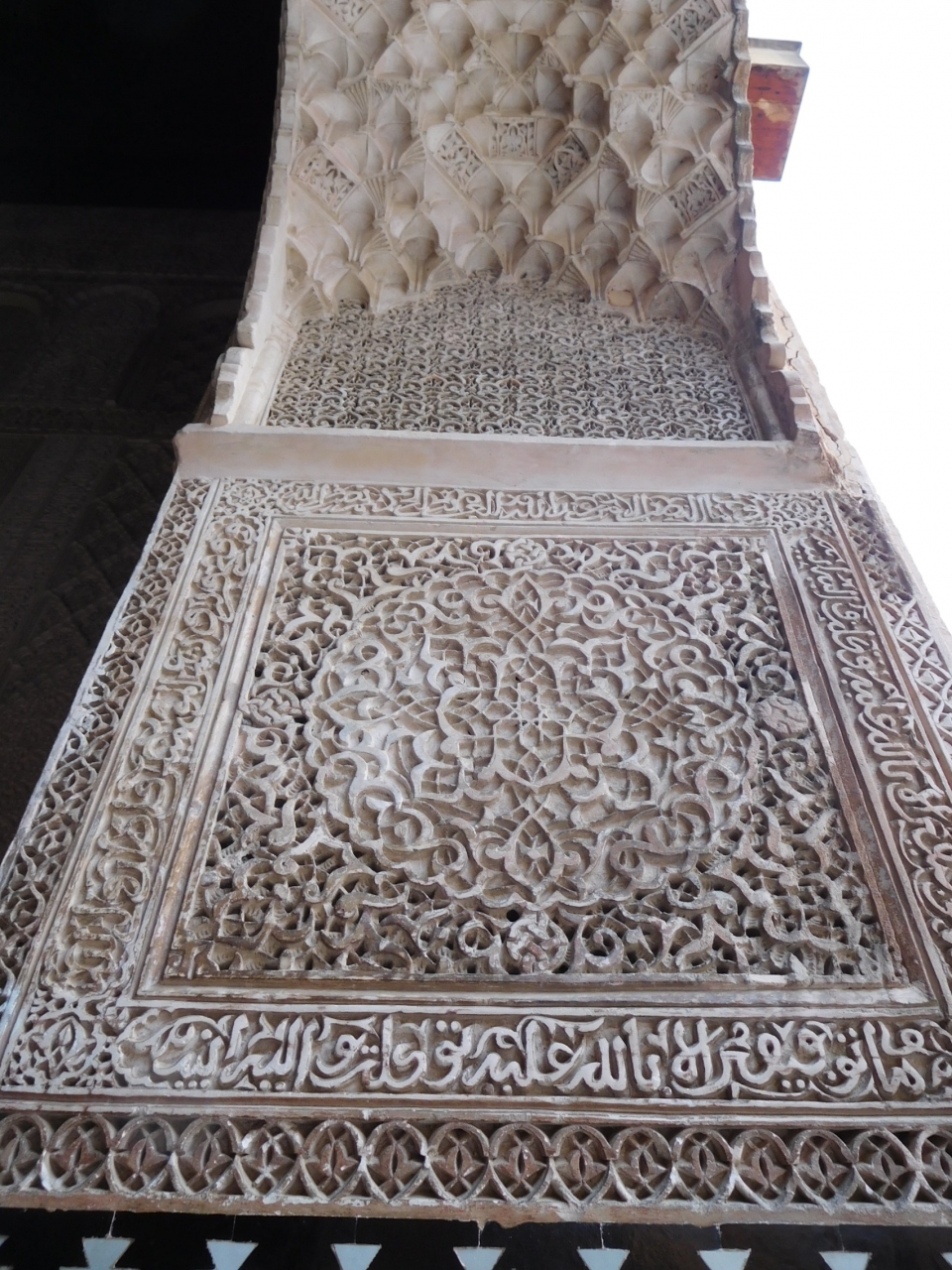 HISの10日間の周遊ツアー(モロッコ夢紀行10日間)で訪れました。フェズは終日観光で、観光の一番最後に行きました。もともとはアッタリーン・マドラサを見学予定だったのですが、現在工事中のため、アッタリーン・マドラサより規模の大きいブー・イナニア・マドラサになりました。規模が大きいといっても、思っていたよりずっと小さかったです。ただし、繊細な彫刻やタイル装飾は美しく、見る価値はあります。