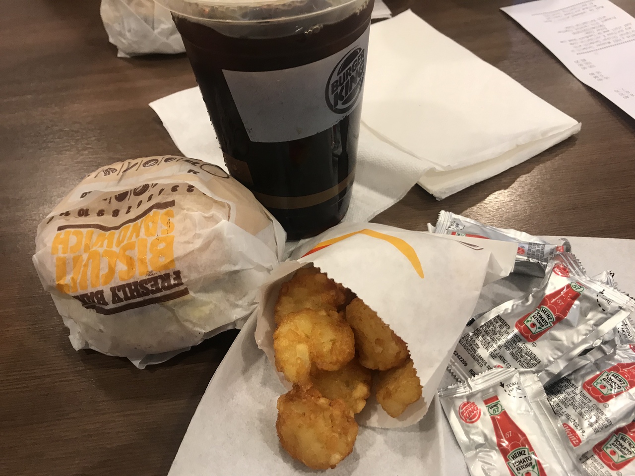 出国後のフードコートでハンバーガー食べて、隣の喫煙所でタバコ吸って時間になったら飛行機乗ります。特段美味しいわけでもないけど、他のお店が微妙な感じなので。ケチャップを鷲掴みで山ほどくれたのでうれしかったです。