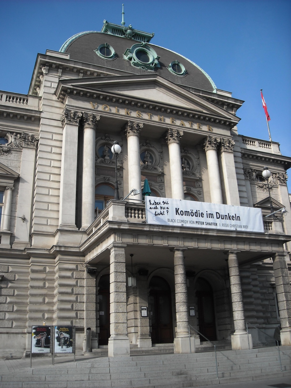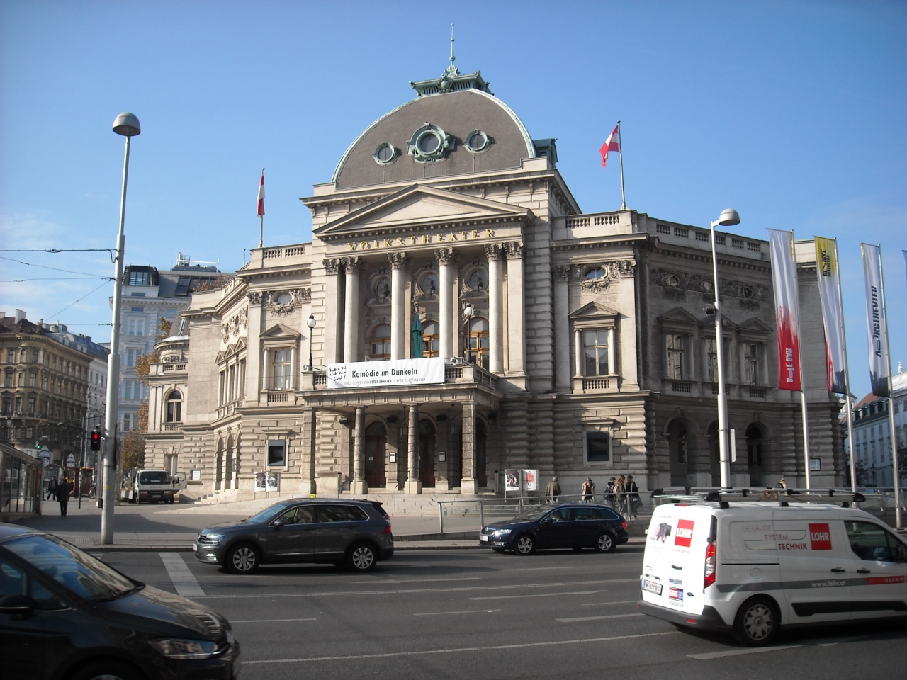 ベートーベン交響曲第一番初演した1000人の大劇場と思い大喜びでしたが、正解はちょっと離れたブルグ劇場でした。“マリア・テレジア広場”の斜め前にある重厚なフォルクス劇場 は地下鉄の上。ウィーンの博物館・美術館エリアにあるようです。