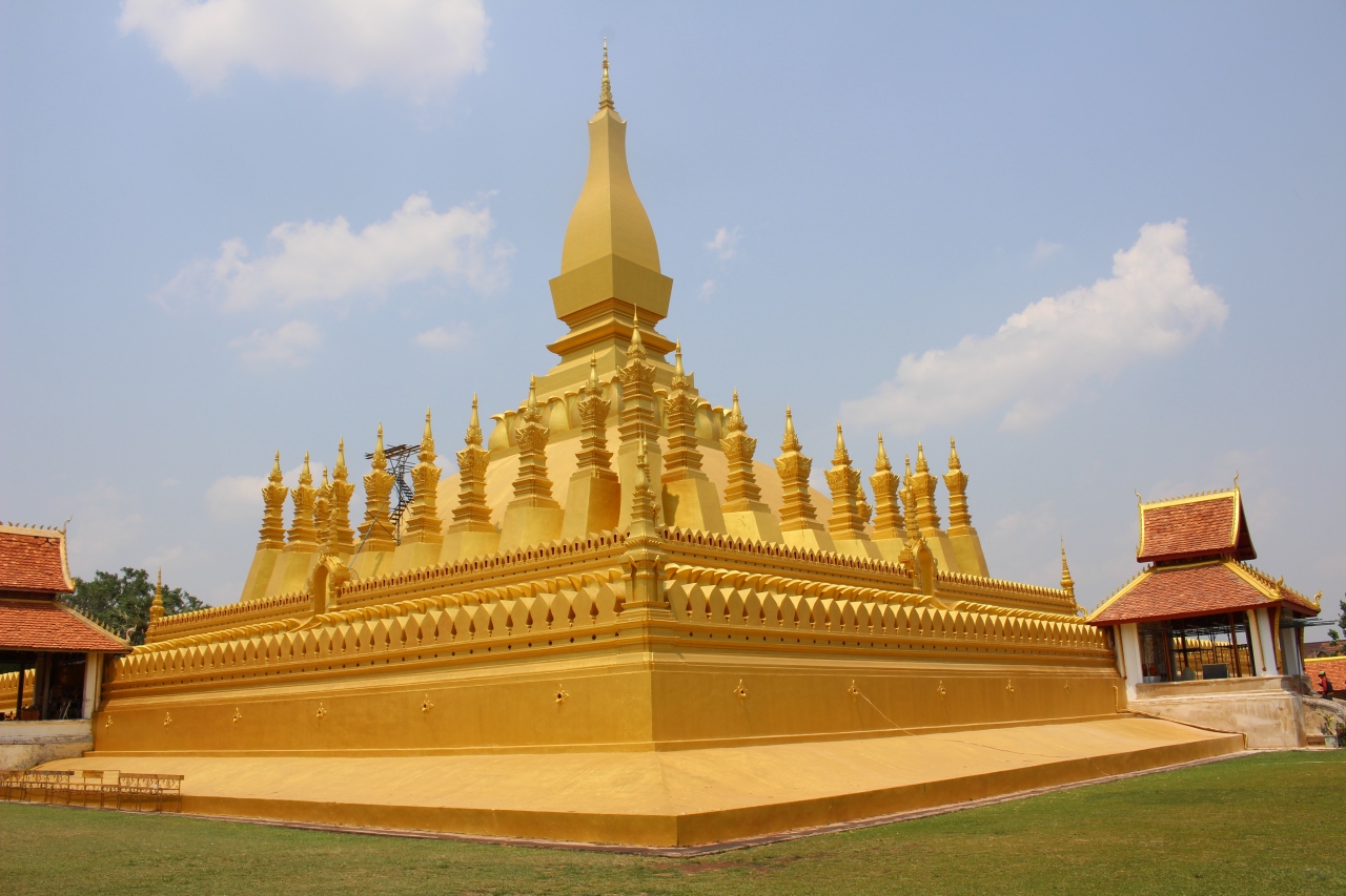ラオスのヴィエンチャンにある、ラオスを代表する仏塔のひとつ。周りに屋台があってビエンチャン観光では訪問することになる場所かと思います。