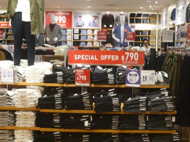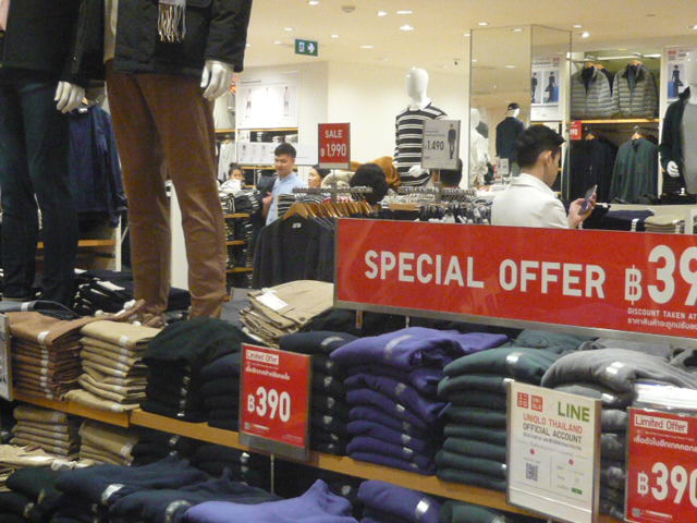ユニクロは、カジュアルな特性上、手頃な価格が主体となっていると思われますが、タイ国内での相対的な価格水準が、いまいち判り難いので、旅行者としては、判断に自信が持てません。